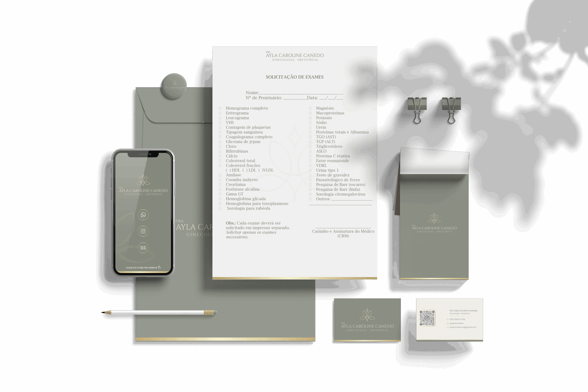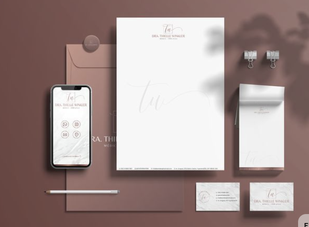 Kit de papelaria (envelope, pasta, papel timbrado ou receituário e assinatura de e-mail)