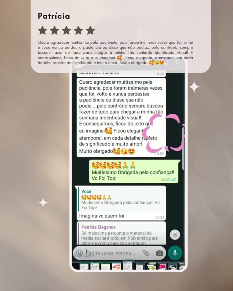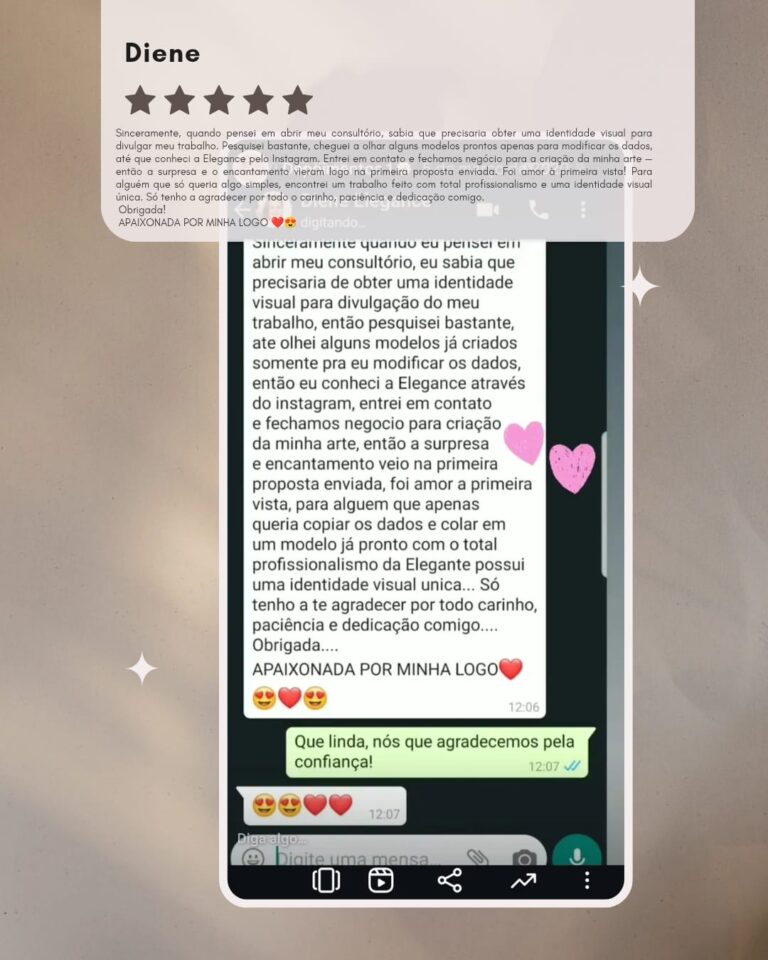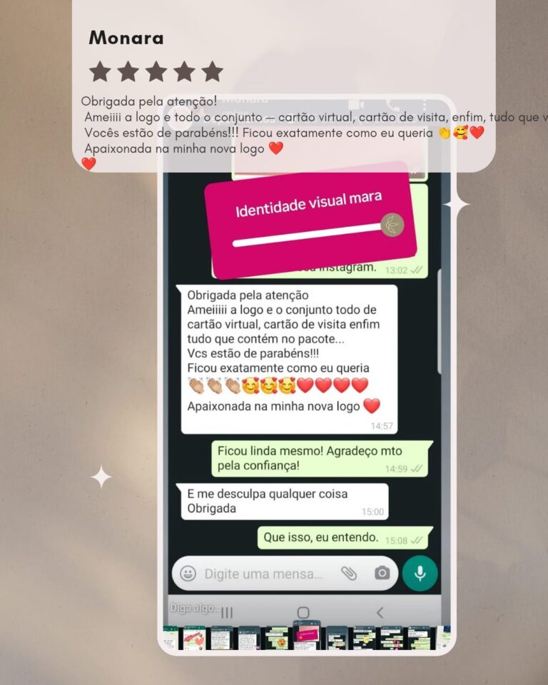 Assim que o pagamento é confirmado, você recebe um briefing completinho para contar tudo sobre sua marca — estilo, preferências, cores e referências. A partir disso, a mágica começa! 🎨
